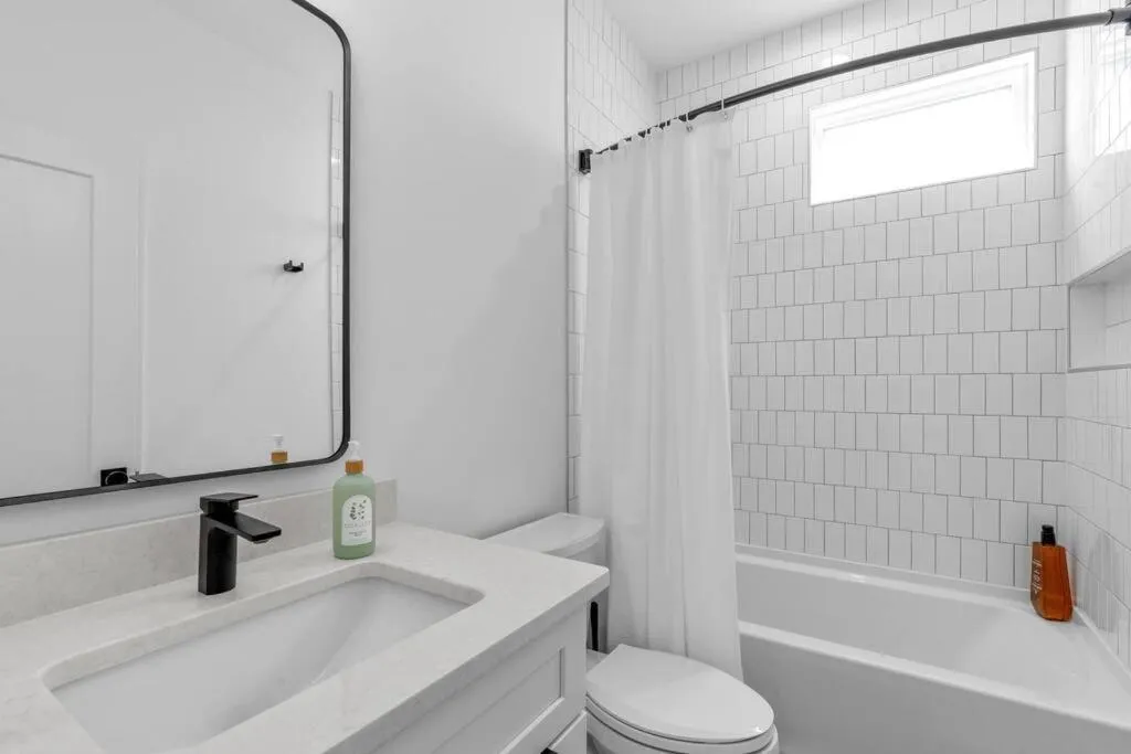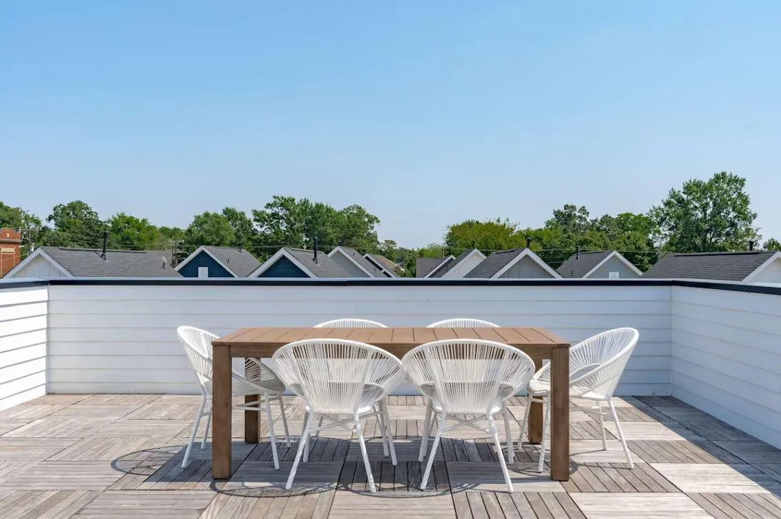 Rooftop terrace with outdoor kitchen and TV, fenced backyard, private bath in every bedroom, high-speed Wi-Fi, and self check-in.